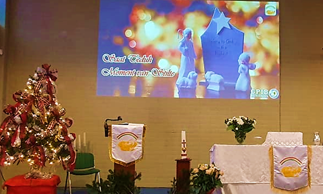 De zondagse erediensten begint om 14.00 uur in de Kerkelijk Centrum De Oase